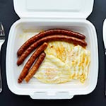 Dobrok porcija ima 3 jajeta i 3 kobasice.