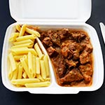 Dobrok porcija ima 470 g u koju ide 300 g mesa, a mala porcija ima 330 g.