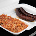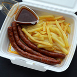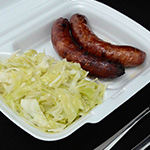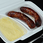 Dobrok porcija je dve kobasice (300g), a mala je jedna kobasica (150g).