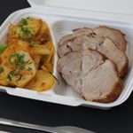 Dobrok porcija sadrži oko 230 g svinjskog vrata bez kostiju i 210 g pirea.