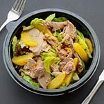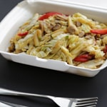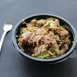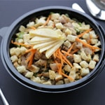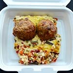 Dobrok porcija je težine oko 400g i u nju ide oko 150g mesa (pileće belo).