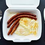 Dobrok porcija ima 3 jajeta i 3 kobasice.
